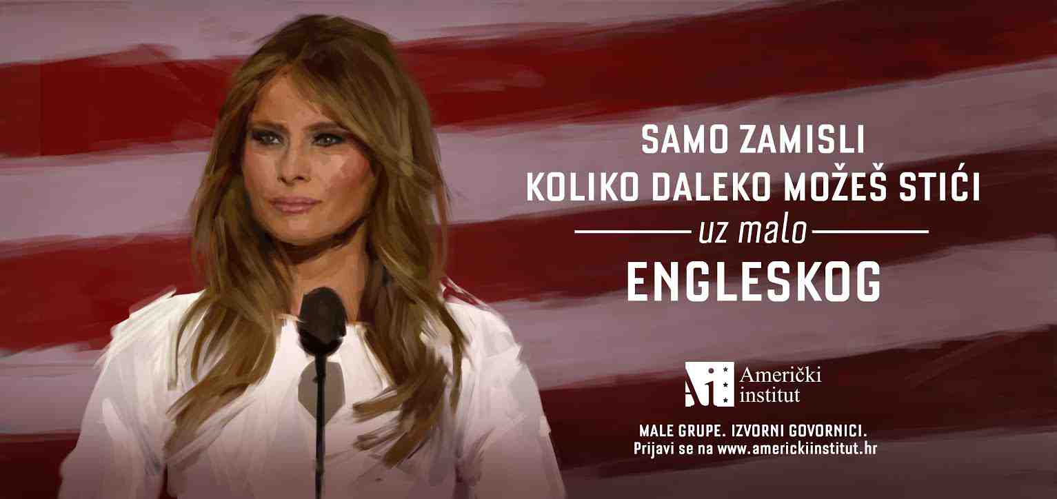 U petak smo objavili vijest o provokativnoj kampanji Američkog instituta u Zagrebu koji poziva na upis na kurs engleskog jezika preko plakata kojim dominira Melania Trump, supruga američkog predsjednika. Ova se vijest nenormalnom brzinom počela širiti društvenim mrežama pa je tako u subotu ujutro osvanula i u američkim medijima.